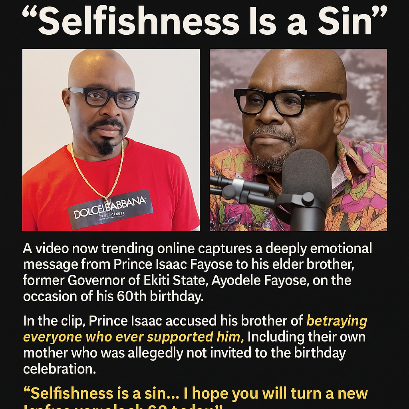 A video now trending online captures a deeply emotional message from Prince Isaac Fayose to his elder brother, former Governor of Ekiti State, Ayodele Fayose, on the occasion of his 65th birthday.