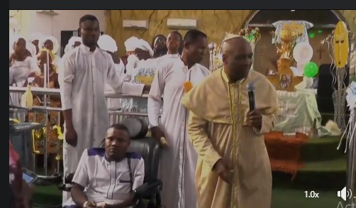Yesterday, during a live service at his church; INRI Evangelical Spiritual Church, a crippled Muslim faithful got the shock of his life when he was called out to receive a modern wheelchair worth N2 Million for free as facilitated by a church member, Mrs Buchi Anene