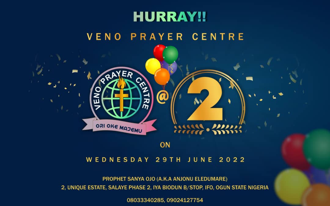 All roads lead to VENO Prayer Centre a.k.a Ori Oke Majemu in Ogun State, Nigeria for the commemoration of two years anniversary on Wednesday, 29th, 2022.